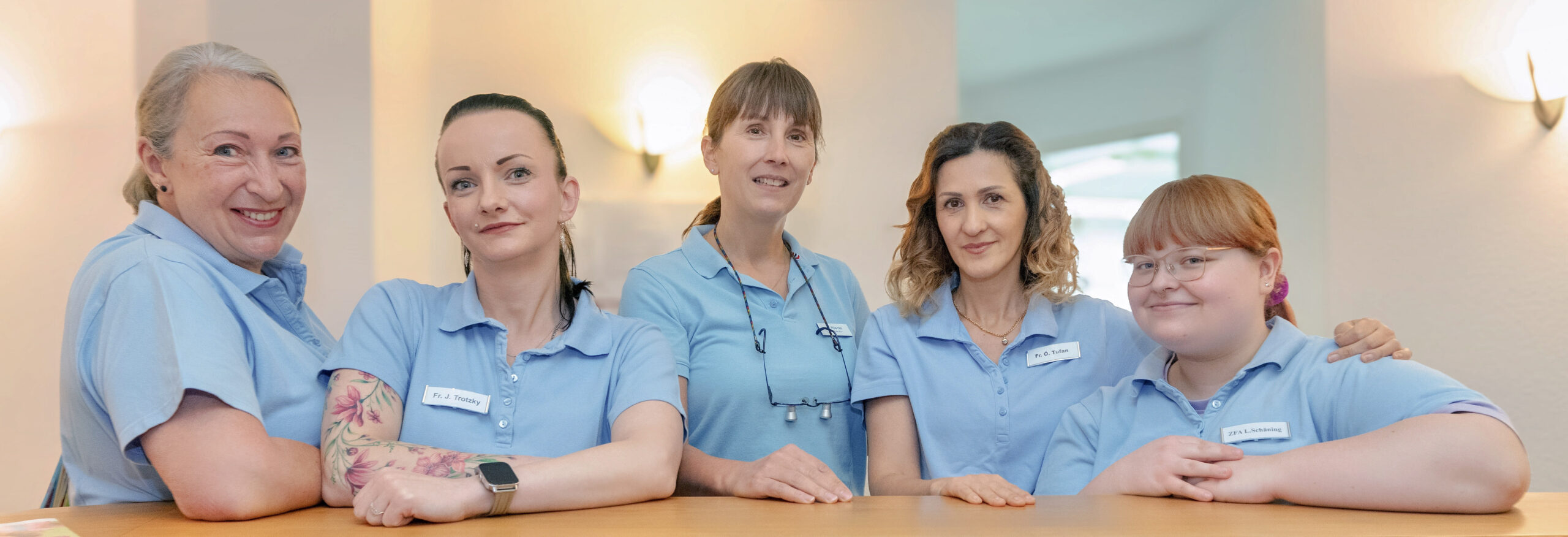 Wir halten zuverlässig vereinbarte Wunschtermine ein und behandeln schonend und schmerzarm die ganze Familie. Unsere moderne Zahnarztpraxis bietet Ihnen alle Möglichkeiten einer umfassenden Behandlung und Prophylaxe.